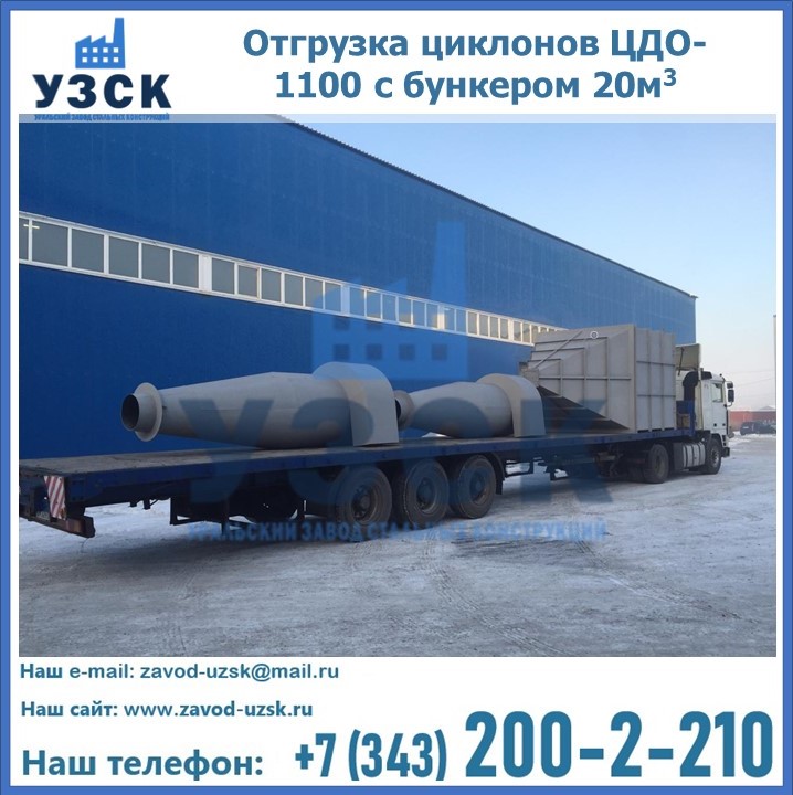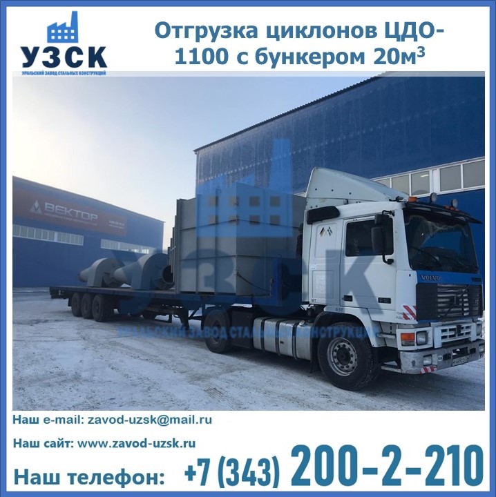 Циклоны ЦДО-1100 с бункером на 20 кубов были отгружены в декабре 2018 года в г. Новосибирск Прокопьевск.