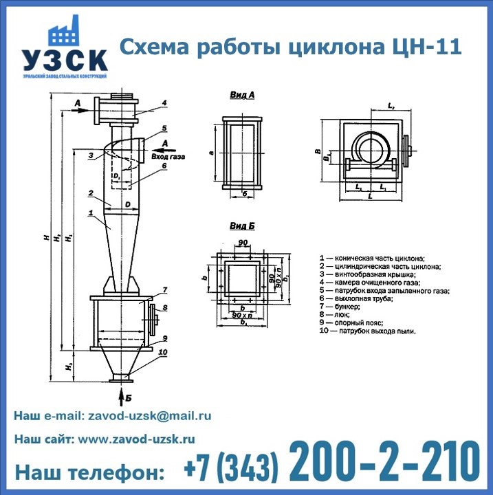 При этом ощутимой разницы в цене между универсальным и узконаправленным, подобранным в соответствии с конкретными техническими требованиями циклоном, нет. Стоимость воздухоочистительного оборудования типа циклон обусловлена маркой и толщиной стали, из которого он изготовлен, сложностью и специфичностью конструкции, наличием дополнительного оснащения (бункер, улитка и другие). При необходимости, на заводе УЗСК в Прокопьевске будет изготовлен циклон по индивидуальным техническим чертежам заказчика.
