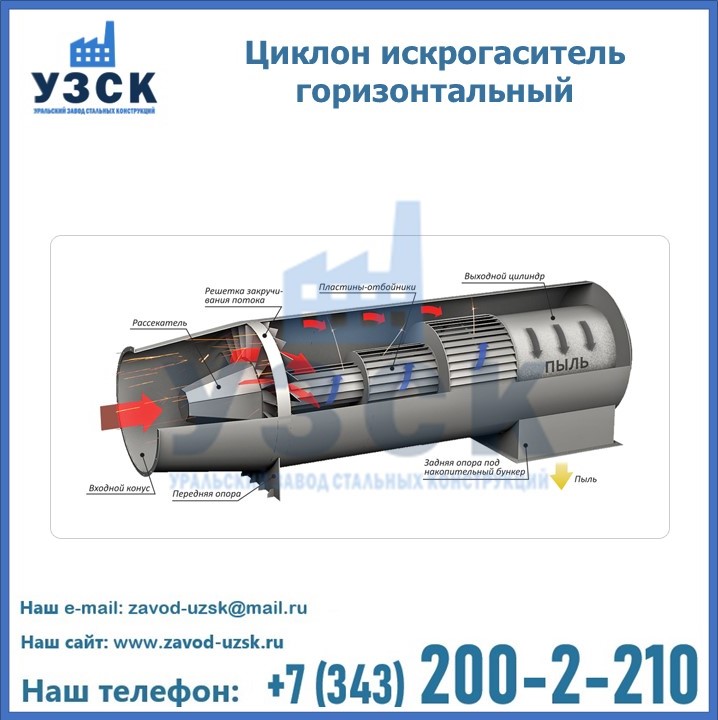 Горизонтальные циклоны-искрогасители ЦГ поставляются в Прокопьевске в сборке или же транспортными единицами для последующей сборки, если предназначены для работы с большими объемами.