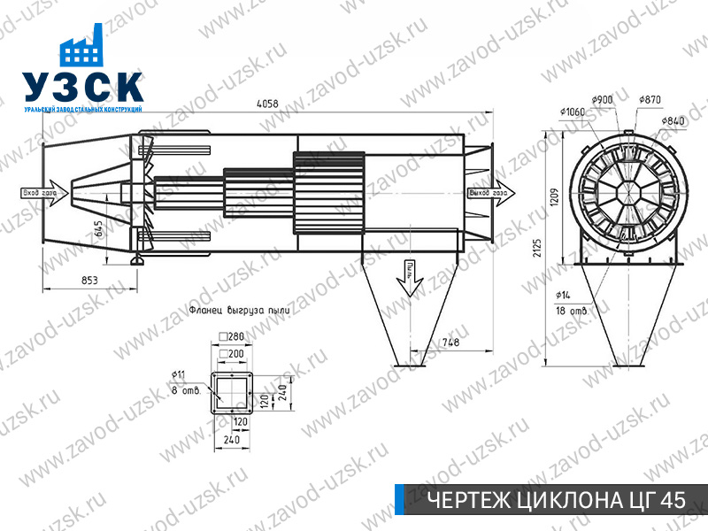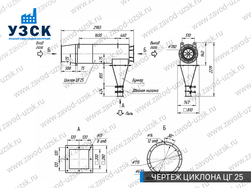 Монтаж циклона-искрогасителя ЦГ должен осуществляться непосредственно к горизонтальному вентиляционному каналу на входе в систему фильтрации и аспирации. Заказать изготовление по индивидуальному техзаданию или купить готовый циклон-искрогаситель ЦГ на заводе УЗСК в Прокопьевске можно, оставив заявку прямо на сайте или позвонив по указанному телефону, уточнив все детали касательно продажи оборудования.