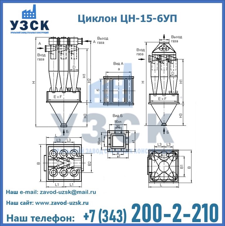 Завод «УЗСК» в Прокопьевске предлагает большой выбор циклонов ЦН-15-800×6УП и прочих устройств, полностью укомплектованных и готовых к эксплуатации. Мы гарантируем соответствие оборудования всем требованиям ГОСТ и ТУ, износостойкость и высокую производительность предлагаемого оборудования. Уральский Завод Стальных Конструкций изготавливает и продает надежное, эффективное и производительное оборудование, имеющее длительную гарантию и большой эксплуатационный ресурс. Если требуется изготовить циклон нестандартных размеров, то такой вариант выполнения заказа тоже предусмотрен, так как предприятие имеет собственные производственные площади и надежных поставщиков. На все поставляемое или производимое оборудование имеются чертежи и прочая техническая документация. Заказать и купить циклоны или прочее оборудование высокого качества и по доступной цене можно через наш сайт или по указанному в разделе «Контакты» телефону.