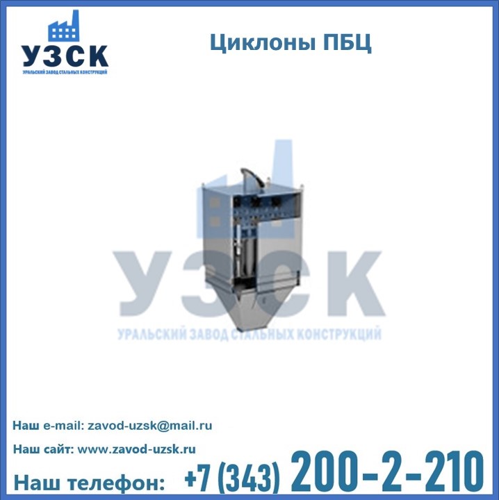 Завод «УЗСК» в Прокопьевске предлагает приобрести циклоны ПБЦ и прочие устройства, полностью укомплектованные и готовые к эксплуатации. Мы гарантируем соответствие оборудования всем требованиям ГОСТ и ТУ, износостойкость и высокую производительность предлагаемого оборудования. Уральский Завод Стальных Конструкций изготавливает и продает надежное, эффективное и производительное оборудование, имеющее длительную гарантию и большой эксплуатационный ресурс. Если требуется изготовить циклон нестандартных размеров, то такой вариант выполнения заказа тоже предусмотрен, так как предприятие имеет собственные производственные площади и надежных поставщиков. На все поставляемое или производимое оборудование имеются чертежи и прочая техническая документация. Заказать и купить циклоны или прочее оборудование высокого качества и по доступной цене можно через наш сайт или по указанному в разделе «Контакты» телефону.